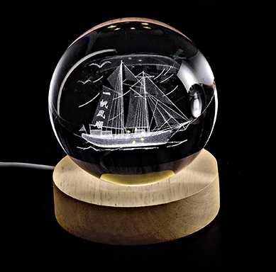 ΚΡΥΣΤΑΛΛΙΝΗ ΜΠΑΛΑ ΦΩΤΙΣΤΙΚΟ ΜΕ ΞΥΛΙΝΗ ΒΑΣΗ ΚΑΡΑΒΙ 8cm