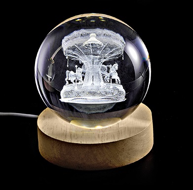 ΚΡΥΣΤΑΛΛΙΝΗ ΜΠΑΛΑ ΦΩΤΙΣΤΙΚΟ ΜΕ ΞΥΛΙΝΗ ΒΑΣΗ ΚΑΡΟΥΖΕΛ 6cm