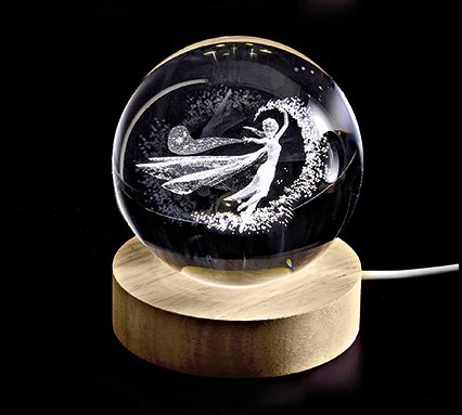ΚΡΥΣΤΑΛΛΙΝΗ ΜΠΑΛΑ ΦΩΤΙΣΤΙΚΟ ΜΕ ΞΥΛΙΝΗ ΒΑΣΗ ΝΕΡΑΙΔΑ 7cm