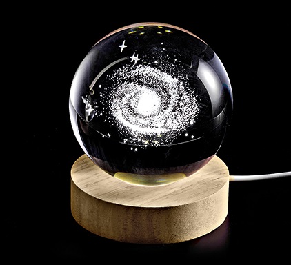 ΚΡΥΣΤΑΛΛΙΝΗ ΜΠΑΛΑ ΦΩΤΙΣΤΙΚΟ ΜΕ ΞΥΛΙΝΗ ΒΑΣΗ ΓΑΛΑΞΙΑΣ 5cm