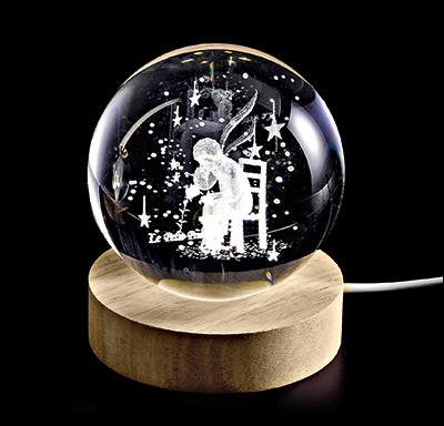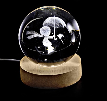ΚΡΥΣΤΑΛΛΙΝΗ ΜΠΑΛΑ ΦΩΤΙΣΤΙΚΟ ΜΕ ΞΥΛΙΝΗ ΒΑΣΗ ΜΙΚΡΟΣ ΠΡΙΓΚΙΠΑΣ 8cm