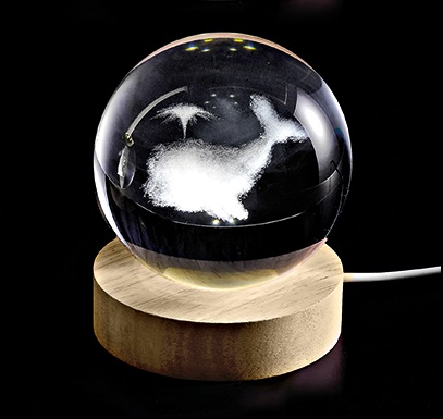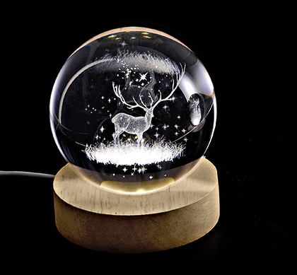 ΚΡΥΣΤΑΛΛΙΝΗ ΜΠΑΛΑ ΦΩΤΙΣΤΙΚΟ ΜΕ 3D ΕΛΑΦΙ ΚΑΙ ΞΥΛΙΝΗ ΒΑΣΗ 8cm