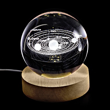 ΚΡΥΣΤΑΛΛΙΝΗ ΜΠΑΛΑ ΦΩΤΙΣΤΙΚΟ ΜΕ ΞΥΛΙΝΗ ΒΑΣΗ ΑΣΤΡΟΝΑΥΤΗΣ ΜΕ ΠΛΑΝΗΤΕΣ 6cm