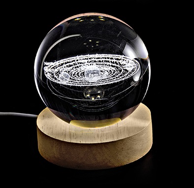 ΚΡΥΣΤΑΛΛΙΝΗ ΜΠΑΛΑ ΦΩΤΙΣΤΙΚΟ ΜΕ ΞΥΛΙΝΗ ΒΑΣΗ ΑΣΤΡΟΝΑΥΤΗΣ ΜΕ ΠΛΑΝΗΤΕΣ 8cm