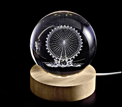 ΚΡΥΣΤΑΛΛΙΝΗ ΜΠΑΛΑ ΦΩΤΙΣΤΙΚΟ ΜΕ ΞΥΛΙΝΗ ΒΑΣΗ ΦΕΓΓΑΡΙ 7cm