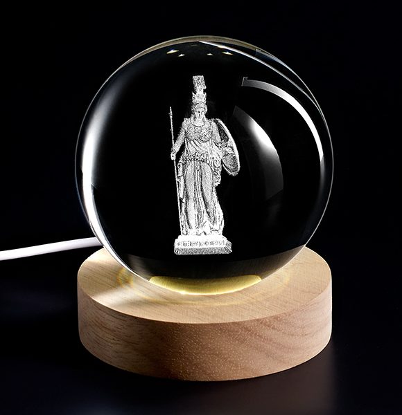 ΚΡΥΣΤΑΛΛΙΝΗ ΜΠΑΛΑ ΦΩΤΙΣΤΙΚΟ ΜΕ ΞΥΛΙΝΗ ΒΑΣΗ ΑΘΗΝΑ 7cm