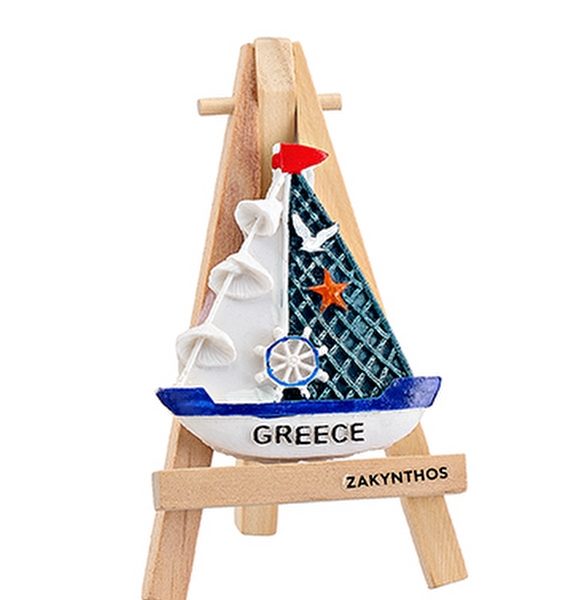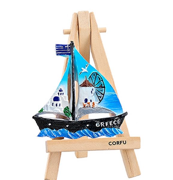 ΜΑΓΝΗΤΑΚΙ ΣΕ ΚΑΒΑΛΕΤΟ ΚΑΡΑΒΙ ΑΝΕΜΟΜΥΛΟΣ ”GREECE” 12cm