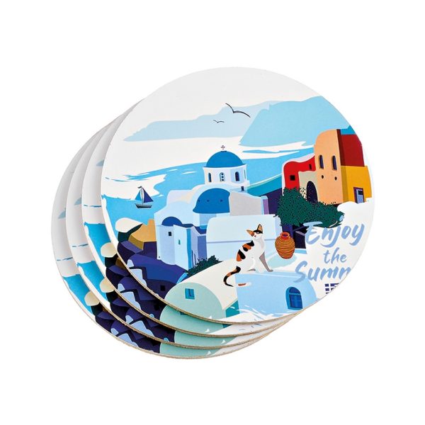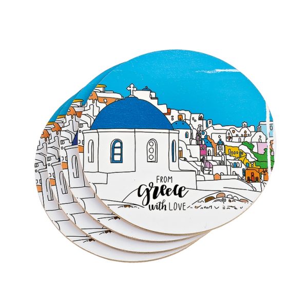 ΣΟΥΒΕΡ ΣΤΡΟΓΓΥΛΑ ΜΕ ΦΕΛΛΟ ΣΕΤ 4 ΤΕΜΑΧΙΩΝ ΕΛΛΗΝΙΚΟ ΝΗΣΙ ”FROM GREECE WITH LOVE” Φ10cm