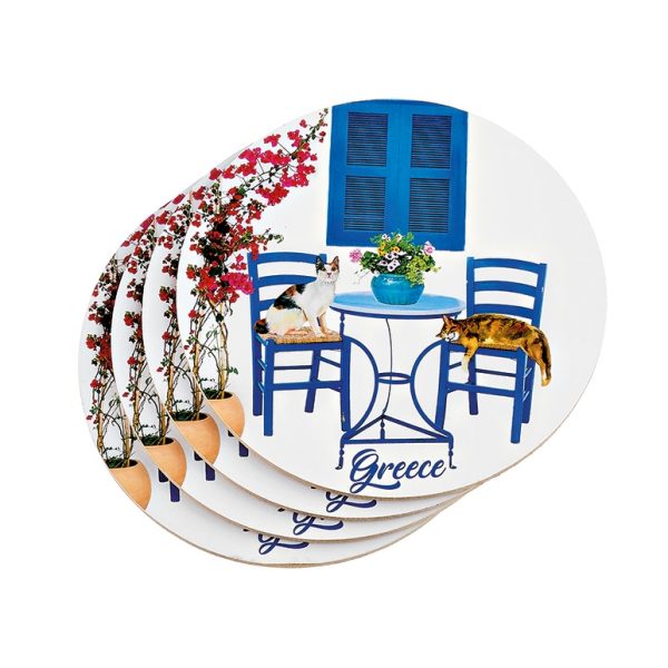 ΣΟΥΒΕΡ ΣΤΡΟΓΓΥΛΑ ΜΕ ΦΕΛΛΟ ΣΕΤ 4 ΤΕΜΑΧΙΩΝ ΓΑΤΕΣ ”GREECE” Φ10cm
