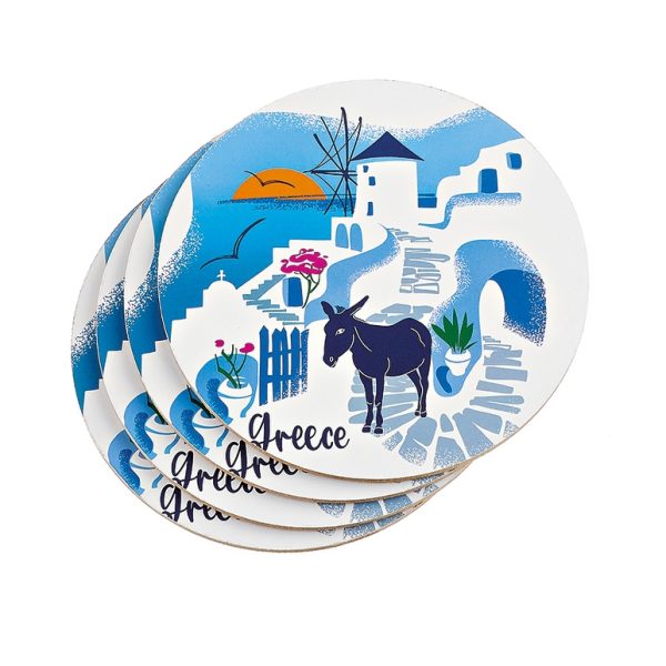 ΣΟΥΒΕΡ ΣΤΡΟΓΓΥΛΑ ΜΕ ΦΕΛΛΟ ΣΕΤ 4 ΤΕΜΑΧΙΩΝ ΓΑΪΔΟΥΡΑΚΙ ”GREECE” Φ10cm