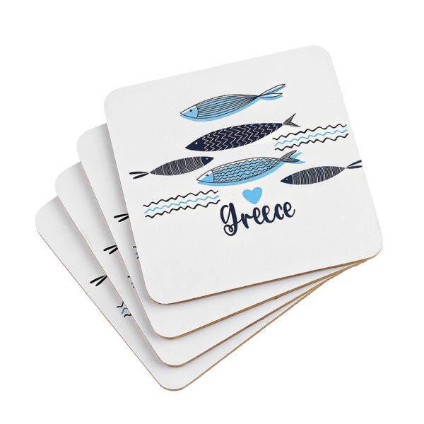 ΣΟΥΒΕΡ ΤΕΤΡΑΓΩΝΑ ΜΕ ΦΕΛΛΟ ΣΕΤ 4 ΤΕΜΑΧΙΩΝ ΒΑΡΚΑ ”GREECE” 10x10cm