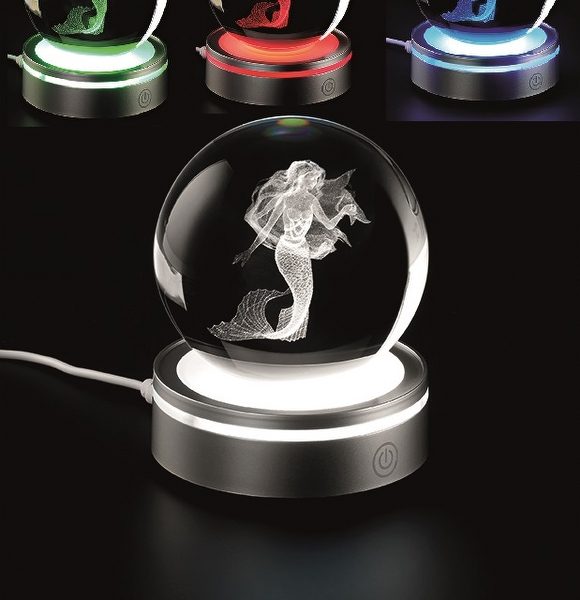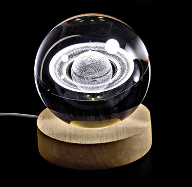 ΚΡΥΣΤΑΛΛΙΝΗ ΜΠΑΛΑ ΦΩΤΙΣΤΙΚΟ ΜΕ ΞΥΛΙΝΗ ΒΑΣΗ ΠΛΑΝΗΤΗΣ ΜΕ ΔΟΡΥΦΟΡΟΥΣ 5cm