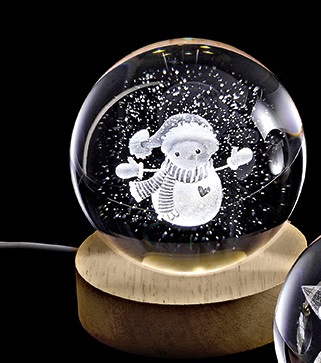 ΚΡΥΣΤΑΛΛΙΝΗ ΜΠΑΛΑ ΦΩΤΙΣΤΙΚΟ ΜΕ ΞΥΛΙΝΗ ΒΑΣΗ ΧΙΟΝΑΝΘΡΩΠΟΣ 6cm