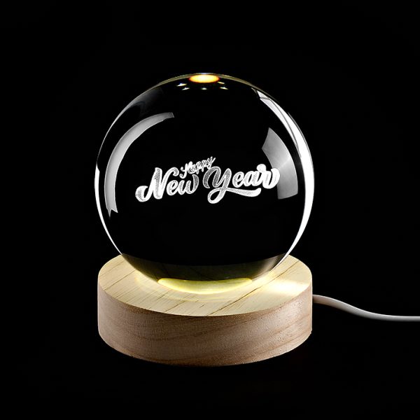 ΚΡΥΣΤΑΛΛΙΝΗ ΜΠΑΛΑ ΦΩΤΙΣΤΙΚΟ ΜΕ ΞΥΛΙΝΗ ΒΑΣΗ HAPPY NEW YEAR 8cm