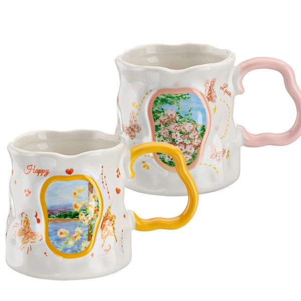 ΚΟΥΠΑ ΠΟΡΣΕΛΑΝΙΝΗ ΜΕ ΛΟΥΛΟΥΔΙΑ ΖΩΓΡΑΦΙΣΜΕΝΗ ΣΤΟ ΧΕΡΙ 4 ΣΧΕΔΙΩΝ Φ10×6.5cm