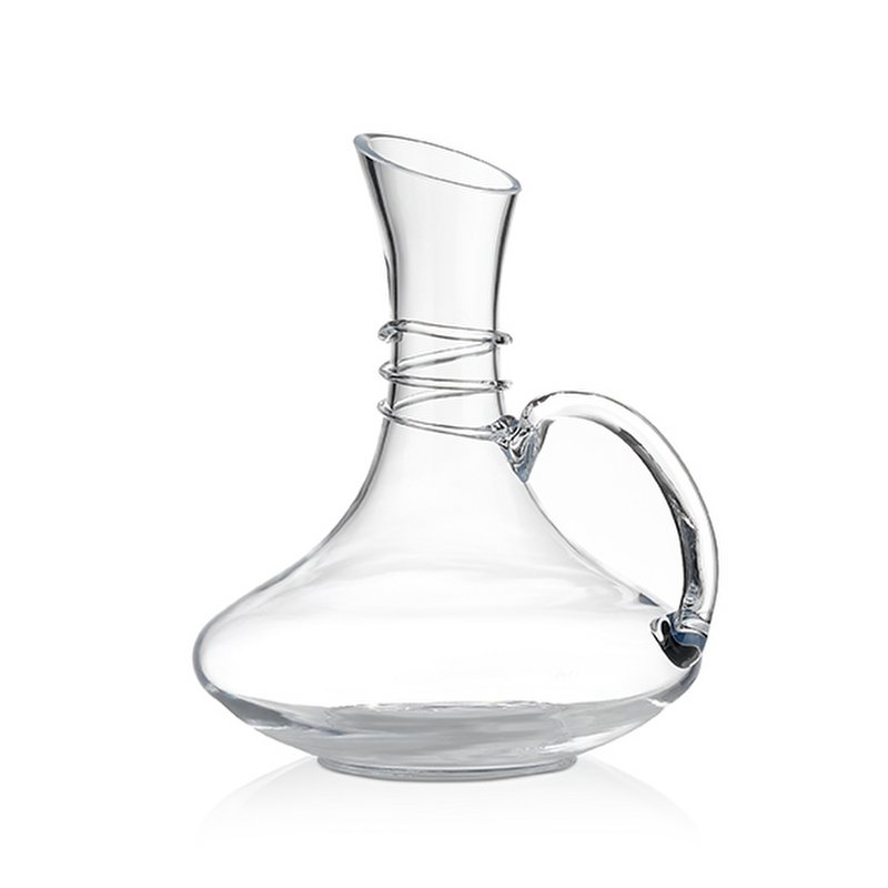 ΓΥΑΛΙΝΗ ΚΑΡΑΦΑ ΣΤΡΟΓΓΥΛΗ ΜΕ ΧΕΡΟΥΛΙ ΚΑΙ ΔΑΧΤΥΛΙΔΙΑ ΣΤΟ ΛΑΙΜΟ 1500ml 20X24CM