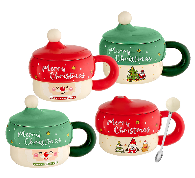 ΚΕΡΑΜΙΚΗ ΧΡΙΣΤΟΥΓΕΝΝΙΑΤΙΚΗ ΚΟΥΠΑ 4 ΣΧΕΔΙΩΝ ΜΕ ΚΑΠΑΚΙ ΚΑΙ ΚΟΥΤΑΛΑΚΙ Φ10.5x12cm