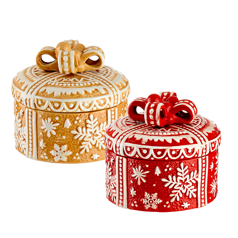 ΚΕΡΑΜΙΚΗ ΧΡΙΣΤΟΥΓΕΝΝΙΑΤΙΚΗ ΣΤΡΟΓΓΥΛΗ ΜΠΙΣΚΟΤΟΘΗΚΗ ΜΕ ΦΙΟΓΚΟ ΣΕ 2 ΧΡΩΜΑΤΑ Φ15x15cm