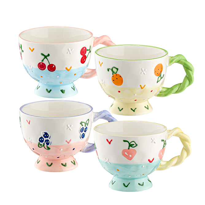 ΚΟΥΠΑ ΠΟΡΣΕΛΑΝΙΝΗ ΜΕ ΦΡΟΥΤΑ ΖΩΓΡΑΦΙΣΜΕΝΗ ΣΤΟ ΧΕΡΙ 4 ΣΧΕΔΙΩΝ Φ11.5×9.5cm