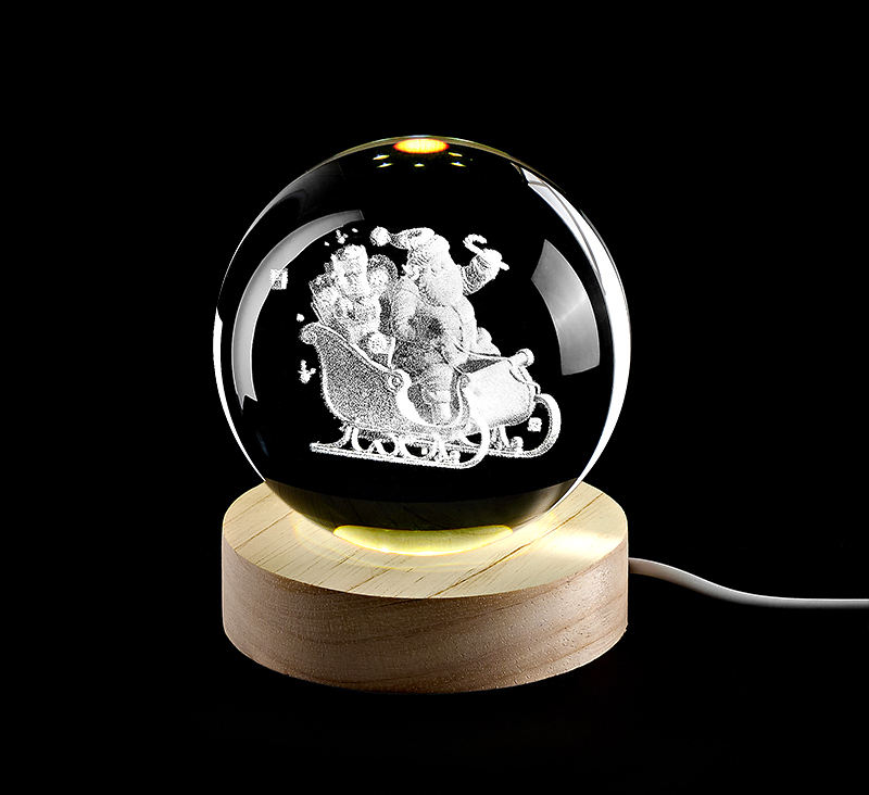 ΚΡΥΣΤΑΛΛΙΝΗ ΜΠΑΛΑ ΦΩΤΙΣΤΙΚΟ ΜΕ ΞΥΛΙΝΗ ΒΑΣΗ ΑΓΙΟΣ ΒΑΣΙΛΗΣ ΜΕ ΕΛΚΗΘΡΟ 10cm