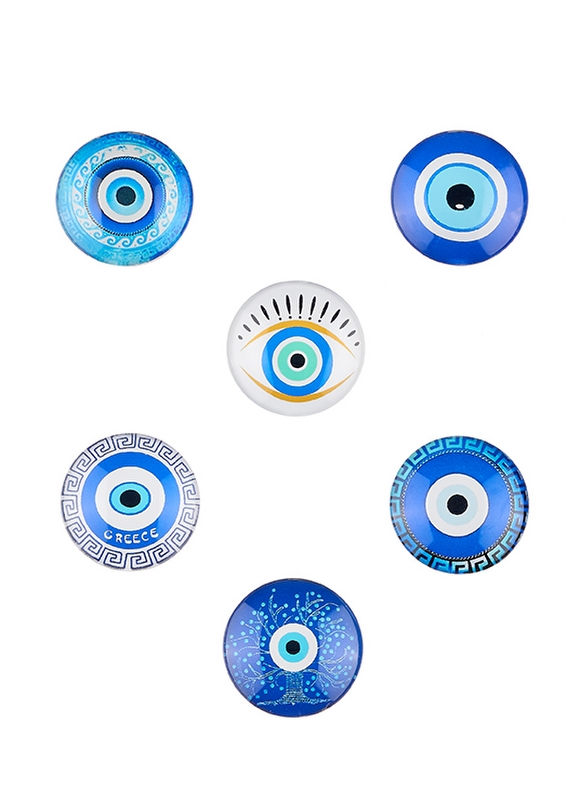 ΜΑΓΝΗΤΑΚΙΑ ΣΤΡΟΓΓΥΛΑ ΜΕ ΜΑΤΑΚΙΑ ”GREECE” 6 ΣΧΕΔΙΩΝ Φ3.5cm