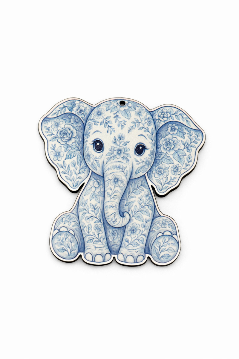 ΞΥΛΙΝΟ ΕΛΕΦΑΝΤΑΚΙ ΜΠΛΕ ΦΛΟΡΑΛ ΚΡΕΜΑΣΤΟ 8x8cm