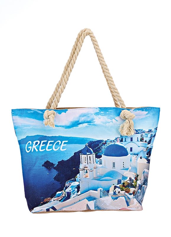 ΤΣΑΝΤΑ ΘΑΛΑΣΣΗΣ ΥΦΑΣΜΑΤΙΝΗ ΝΗΣΙ 2 ΟΨΕΩΝ ”GREECE” 47x14x35cm