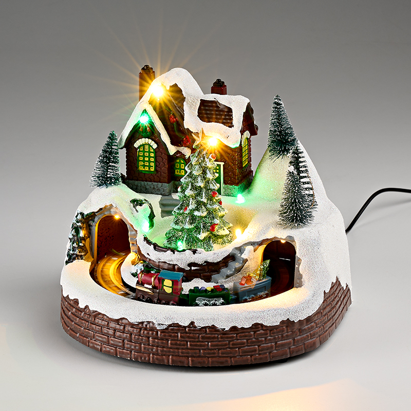 ΧΡΙΣΤΟΥΓΕΝΝΙΑΤΙΚΟ ΧΩΡΙΟ ΔΕΝΤΡΟ & ΤΡΕΝΑΚΙ ΜΕ ΦΩΣ,ΜΟΥΣΙΚΗ & ΚΙΝΗΣΗ 19x15x16cm